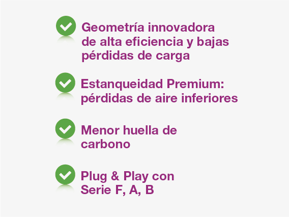› Baja pérdida de carga; ΔP recomendado de 200 Pa